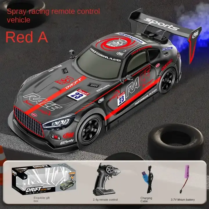 Masinuta cu telecomanda, lumini intermitente, pulverizare apa, drift, vehicul de curse pentru copii, Rosie