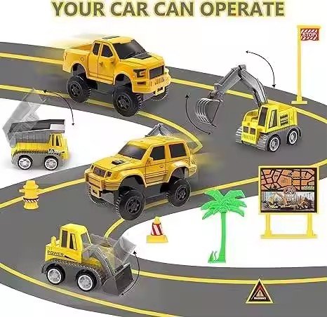 Continut: Camioane, macarale, semne de circulatie si piese flexibile pentru drumuri