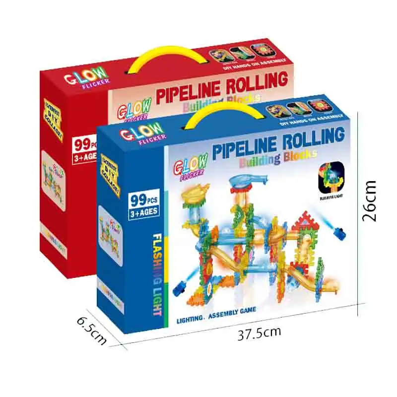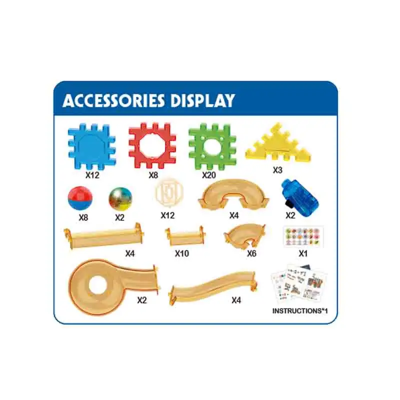 Include tuburi, piste, tobogane si elemente de conectare colorate.