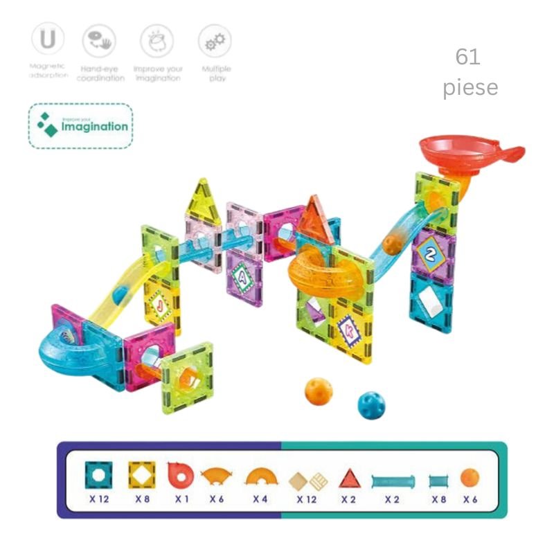 Set de piese magnetice DIY (Do It Yourself), destinat construirii diferitelor structuri, ideal pentru dezvoltarea creativitatii si a abilitatilor cognitive ale copiilor.
