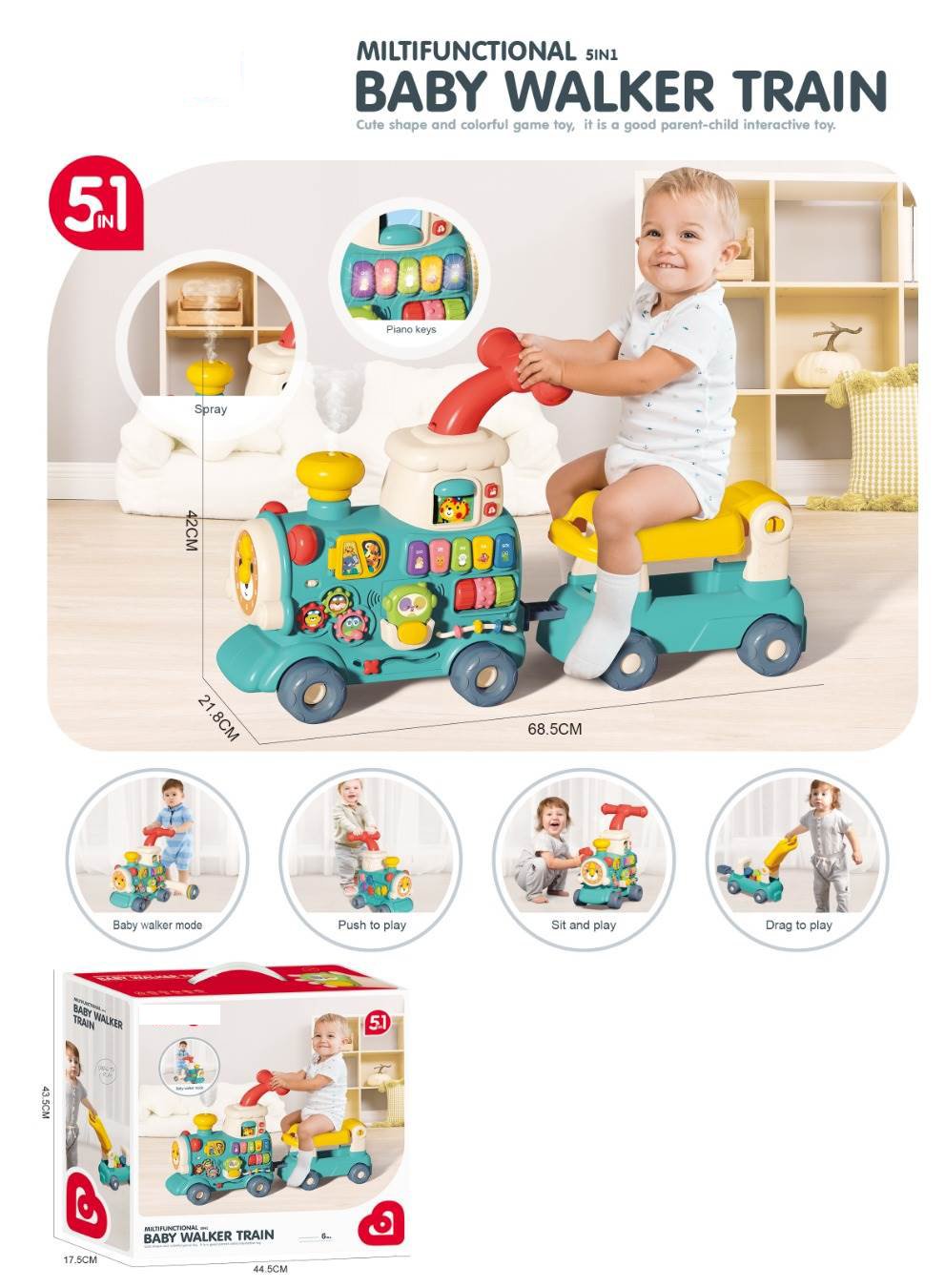 3. Vehicul de plimbat: Copilul se poate aseza pe trenulet si il poate folosi ca pe un vehicul de plimbat, dezvoltandu-si echilibrul si coordonarea.